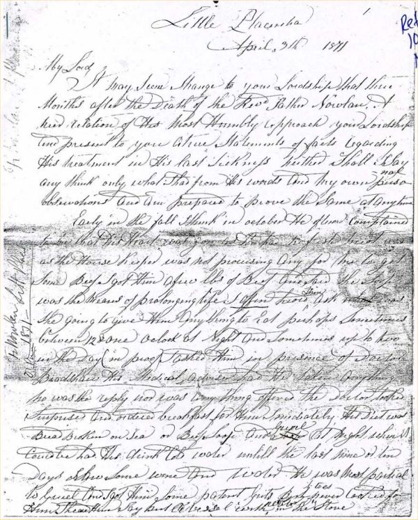 Here is a scan of the first page of Thomas Freeman's letter. The entire document is available at the Roman Catholic Archdiocese of St. John's Archives. According to the Archivist, the note written at the left side middle is in the handwriting of Bishop Howley. ![]() |